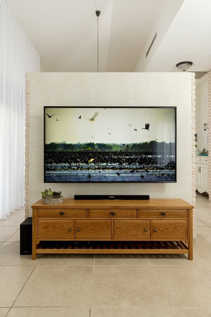 צידו השני של הקיר יצר מקום ייחודי ויפה לפסנתר, שכל מי שנכנס לבית מיד רואה אותו.